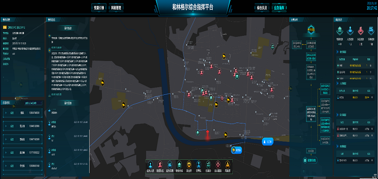 智慧和林格爾縣域基層治理的一部分,提供了應急指揮系統,作為事件處置中心,結合預案、GIS進行可視化指揮: