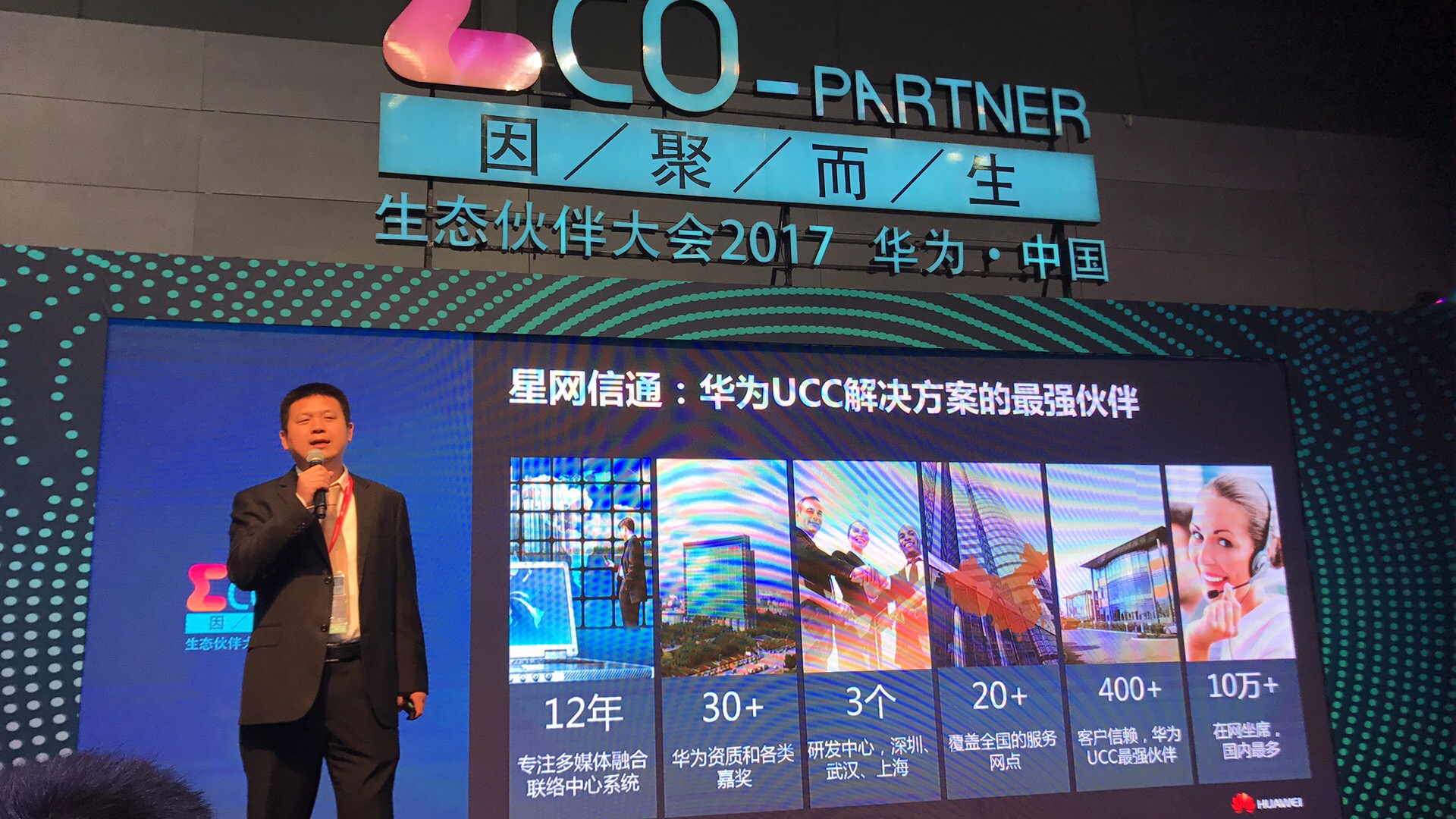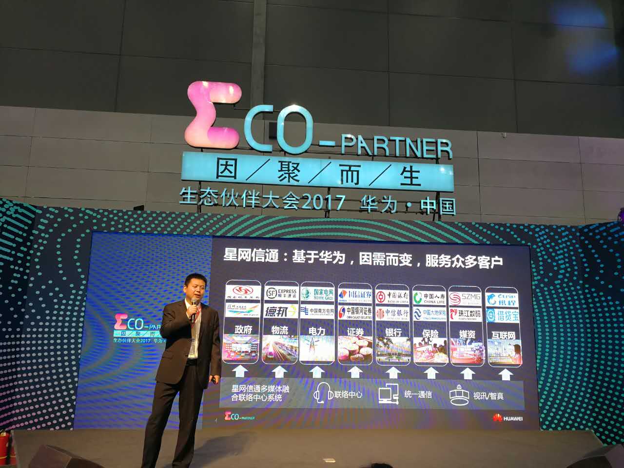 作為“因聚而生——ΣCO-Partner,華為中國生態伙伴大會2017”的參會商,也是深圳市金證科技股份有限公司旗下平臺子公司,深圳市星網信通科技有限公司在過去12年來專注多媒體融合聯絡中心系統,研發中心分布深圳、武漢、上海三大城市,覆蓋全國20多家服務網點,擁有10萬多個在網坐席,服務涉及政府、物流、電力、證券、銀行、保險、基金、互聯網、媒資等超400多家客戶,成為華為UCC解決方案的最強生態伙伴,獲得包括華為UC&C五鉆認證服務商認證、華為企業網絡(數通&安全)五鉆認證在內的30多個華為各類認證和嘉獎。
