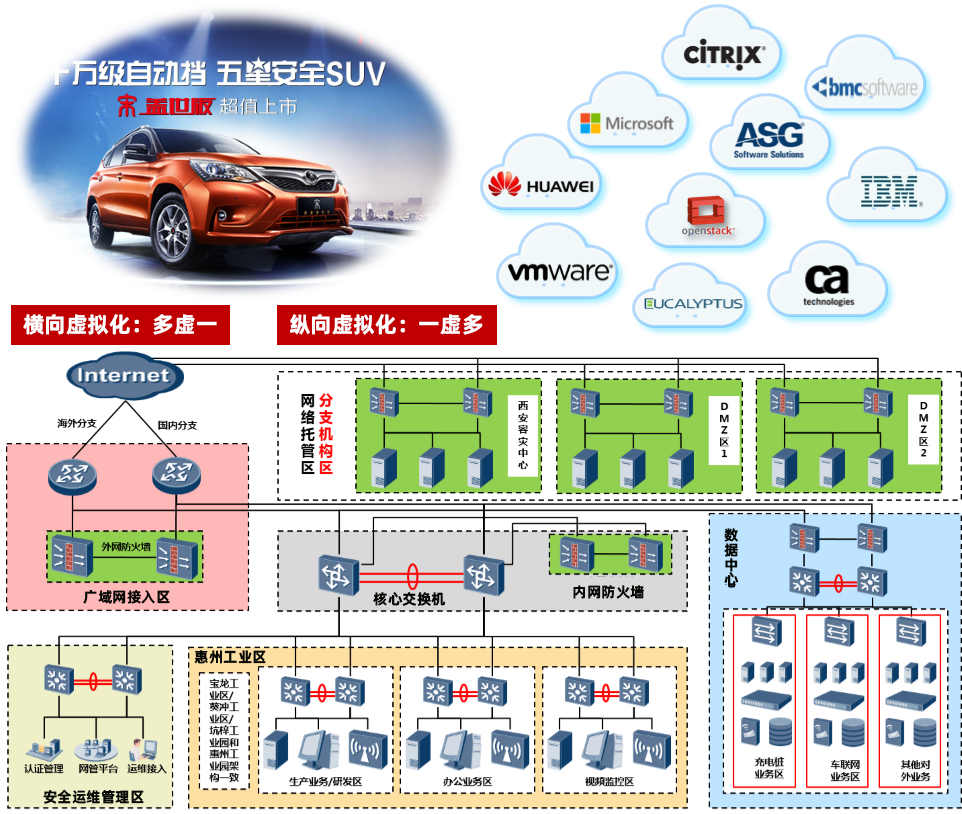 (1)比亞迪新能源和車聯(lián)網(wǎng)業(yè)務(wù)發(fā)展,現(xiàn)有的小容量和傳統(tǒng)級數(shù)據(jù)中心網(wǎng)絡(luò)無法滿足業(yè)務(wù)增長需求