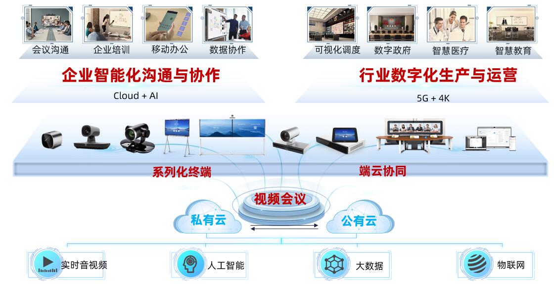 “3”是指三類智能協作終端,分別是面向專業會議的智真系列,面向團隊協作的企業智慧屏系列,面向個人辦公的智能桌面系列;